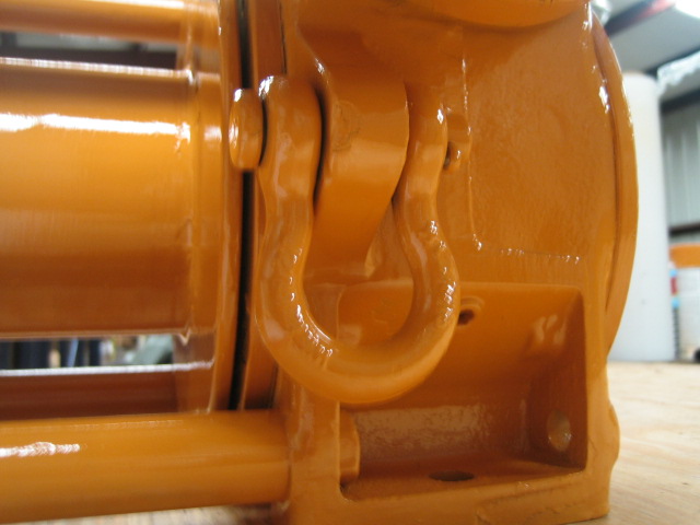 Two shackles are mounted on the rear of the winch, one on either side of the drum to deadman the unit to if not base mounted.